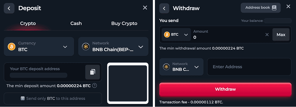 You can withdraw any cryptocurrency to an external wallet which supports the network you choose. Pick the digital asset and the network you want to use for making a withdrawal. Then enter the wallet address, the amount of crypto, and click the “Withdraw” button. The minimum withdrawal amount is also different for each coin. Security of your funds is our top priority, so the risk department conducts a manual audit of each transaction. That's why withdrawals can take up to 24 hours for wins in Original games and up to 72 hours for wins in integrated games.